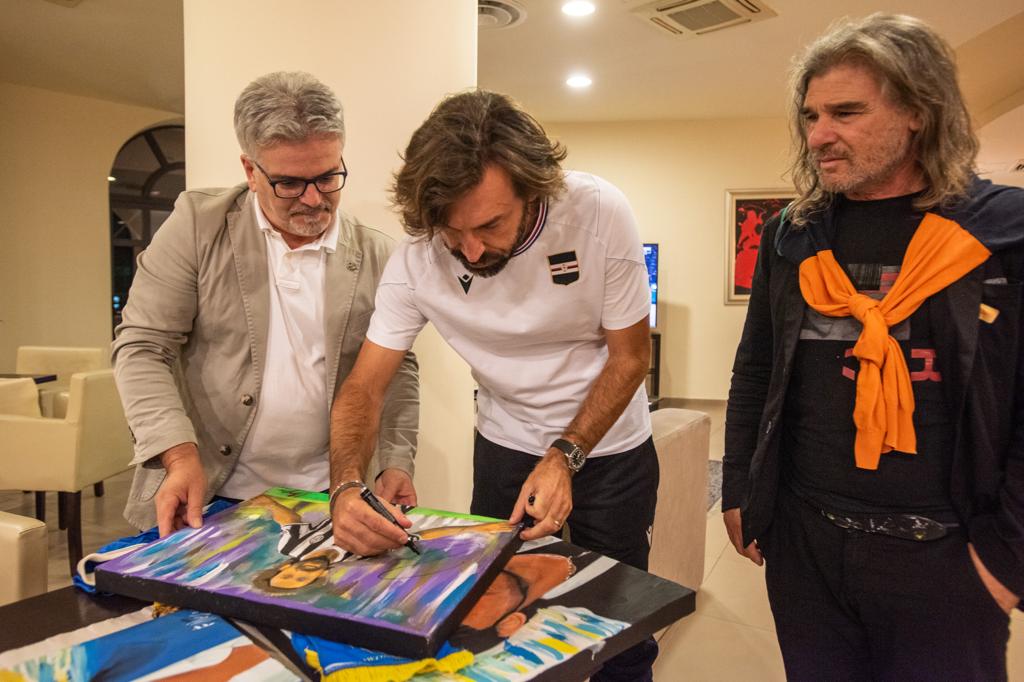 Un omaggio d’arte fatto di profondità e sensibilità per due protagonisti del calcio italiano. Così il noto pittore Fernando Alfonso Mangone ha voluto immortalare sulla tela Andrea Pirlo e Nicola Legrottaglie, consegnando le opere proprio nelle mani dei due sportivi la scorsa sera, in occasione della sfida di Coppa Italia tra Salernitana e Sampdoria.