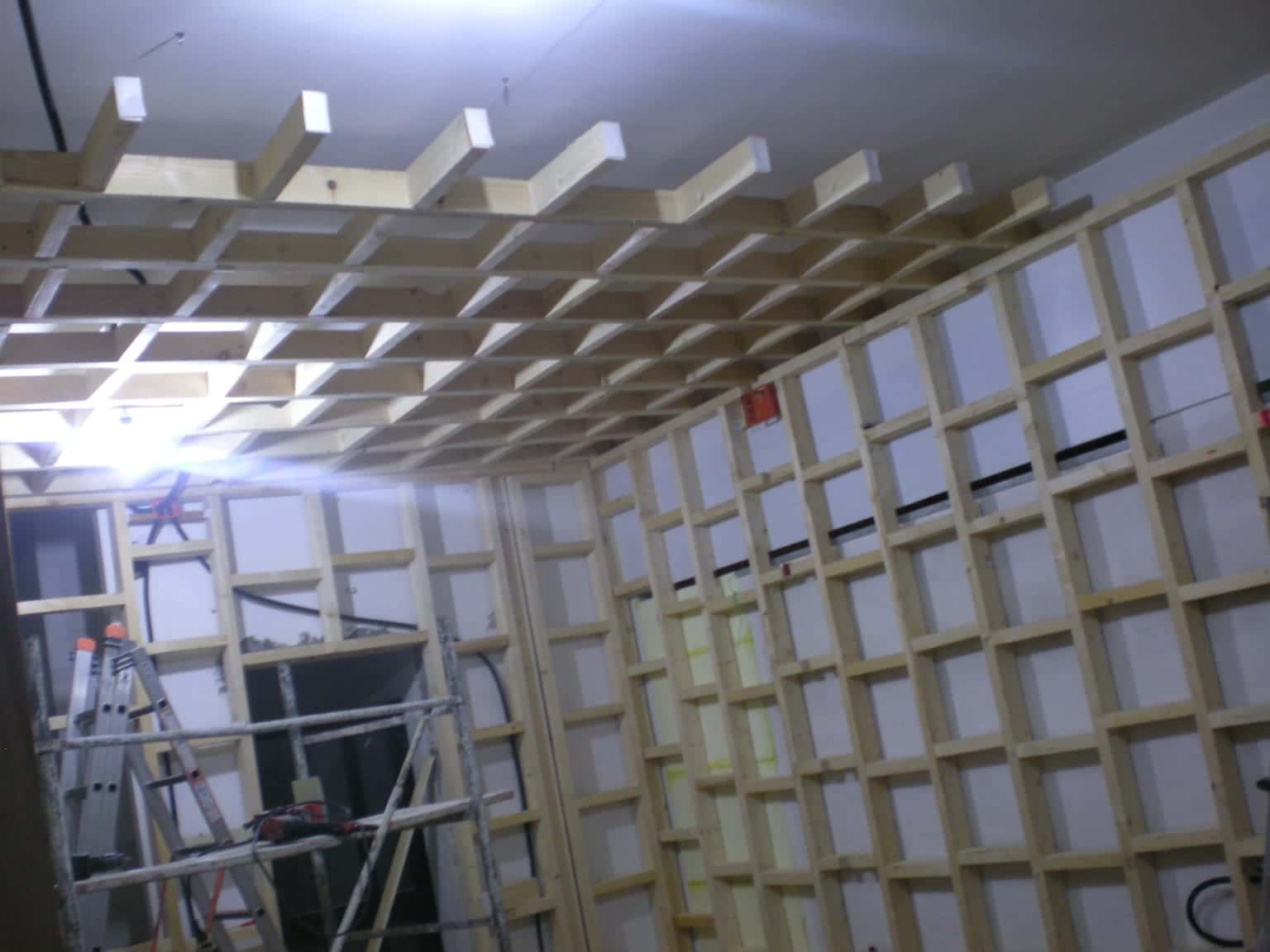 Cosa serve per allestire una buona sala prove? Fabio non risponde “soldi” ma conoscenza, ispirazione e una buona pianificazione. È stato necessario affrontare un intervento importante di isolamento per diminuire la trasmissione sonora tra diversi ambienti, altri per migliorare a migliorare l’acustica interna della nostra sala, controllare le riflessioni e il tempo di riverbero. Tutto ciò ha richiesto oltre ad una straordinaria competenza di sound engineer, centinaia di tappi di sughero per ovattare le pareti, 4 metri cubi di legno per creare la struttura delle pareti, travi e pilastri, 60 pannelli di spugna insonorizzanti, volumi di lana di pecora riciclata.
